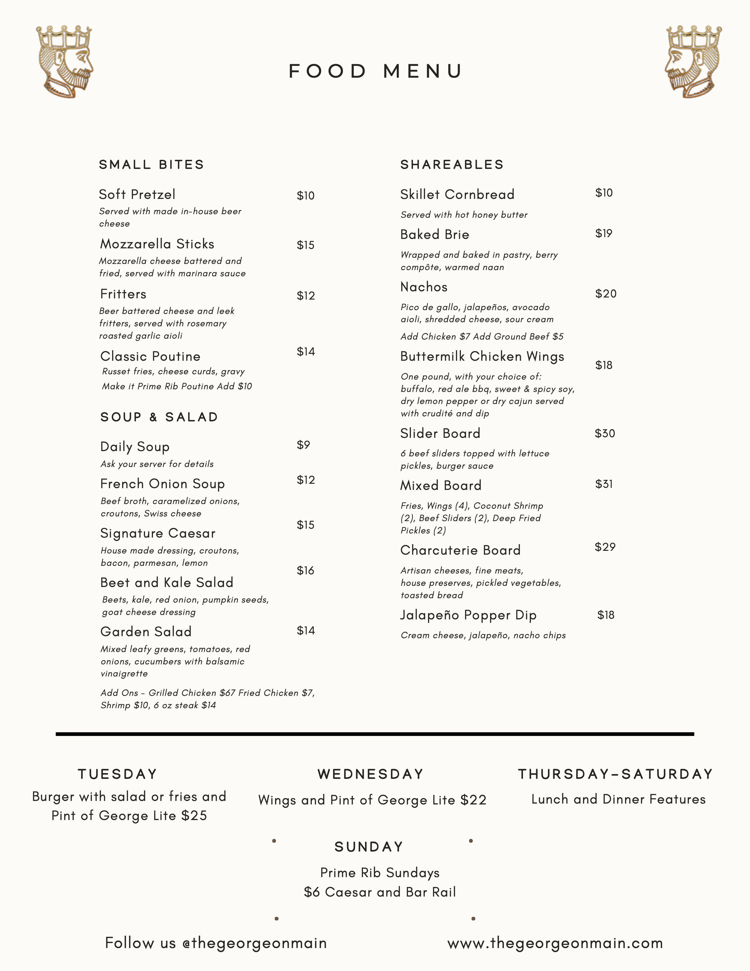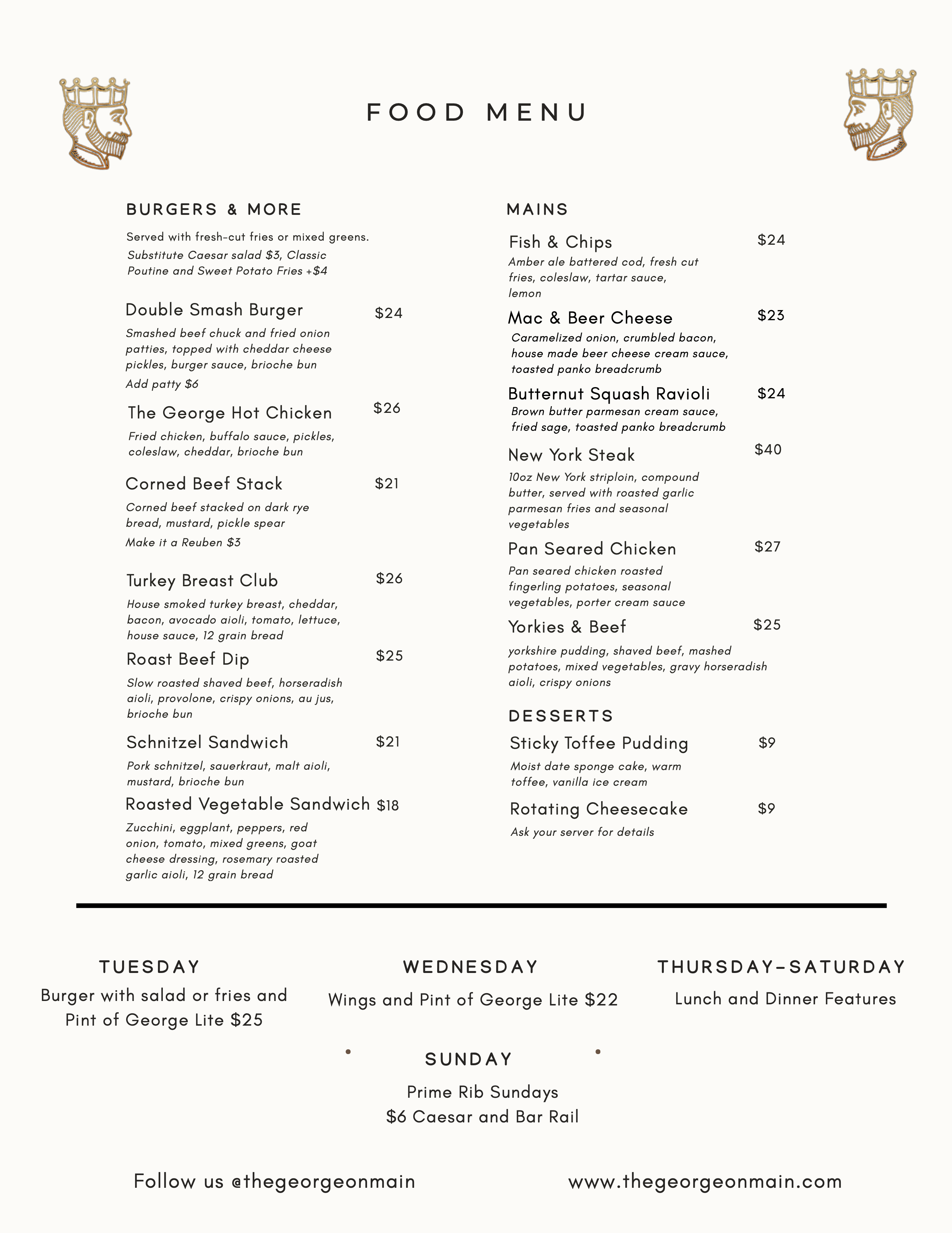 The beers we brew at the George are meant to offer a wide selection of styles and flavours to satisfy purists and adventurous beer drinkers alike. We strive to incorporate local, seasonal products to showcase a range of beers that uniquely speaks to our history and region, as well as compliment our elevated pub food.